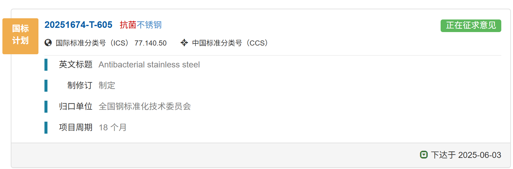 國(guó)家標(biāo)準(zhǔn)《抗菌不銹鋼》正在征求意見(jiàn),歡迎報(bào)名成為起草單位參與制定行業(yè)技術(shù)新規(guī)則
